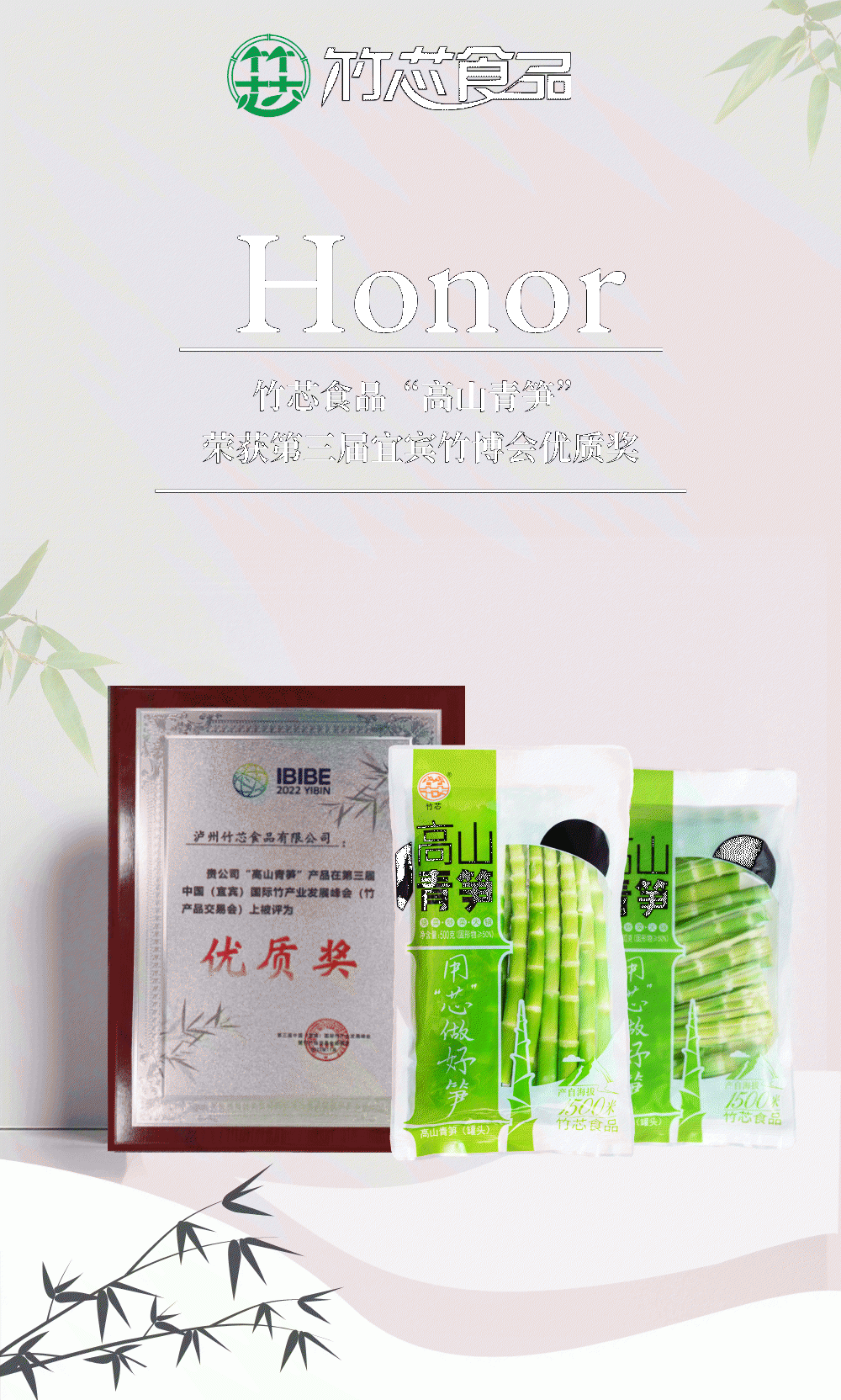 特大喜訊!竹芯食品榮獲第三屆中國(宜賓)國際竹產(chǎn)業(yè)峰會(huì)——優(yōu)質(zhì)獎(jiǎng)